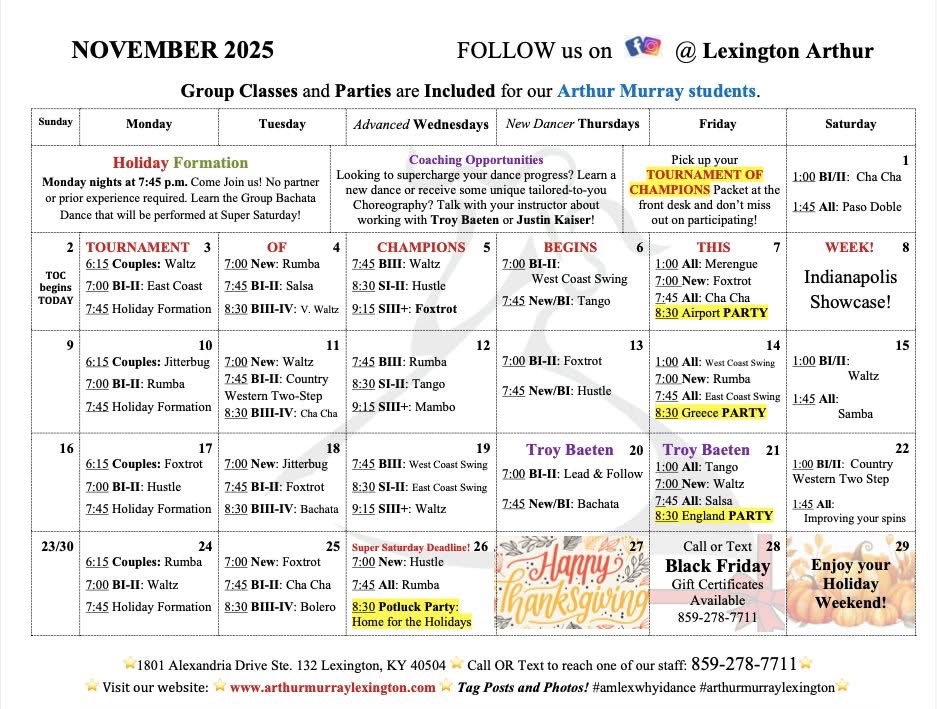 See The Latest Upcoming Events in Our Studio